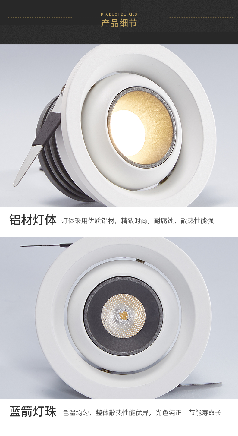 灯饰 灯饰产品 室内高亮简约小开孔尺寸LED嵌入式射灯