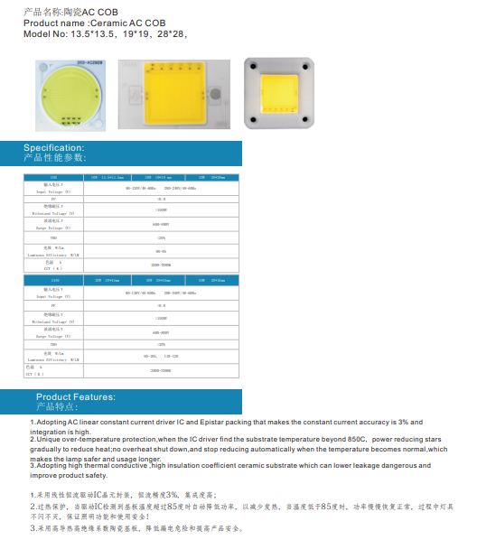 • 产品名称: 陶瓷AC COB
