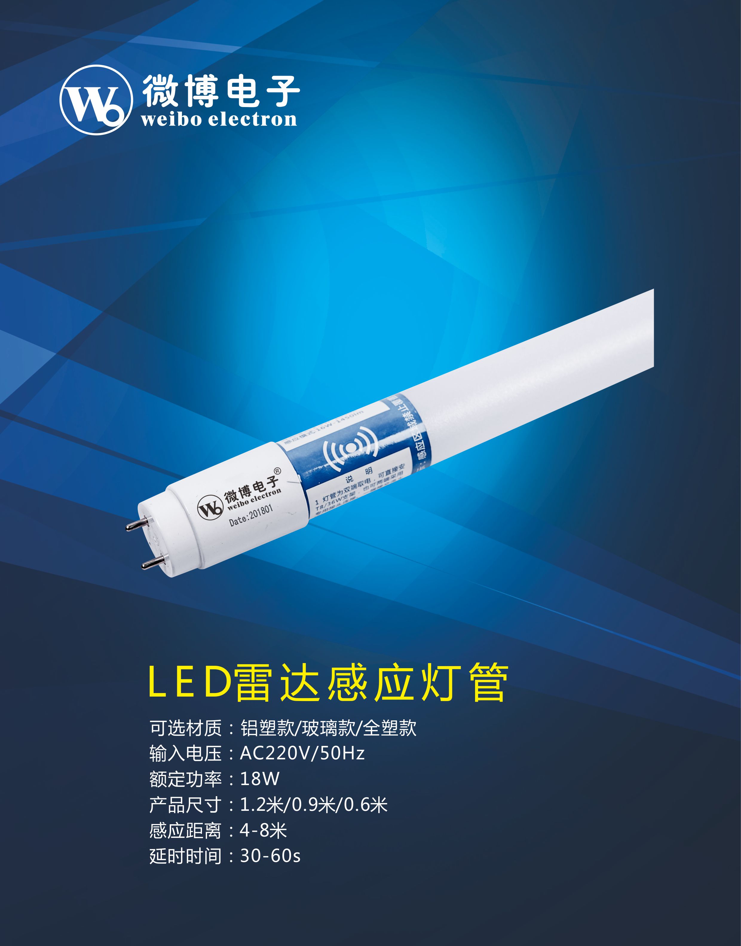 • 产品名称: 微博电子LED雷达感应灯管