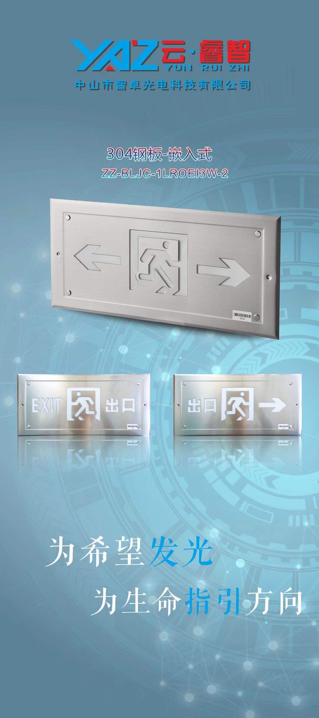 • 产品名称: 智卓304钢板-嵌入式应急灯