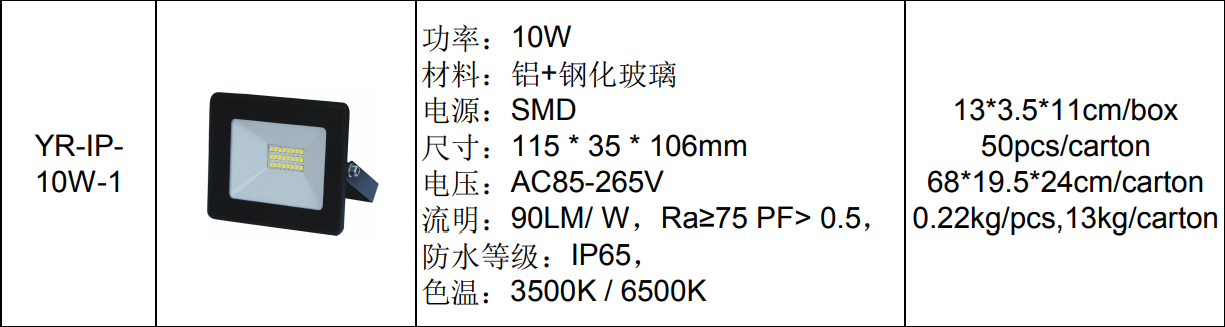 • 产品型号: 优瑞YR-IP- 10W-1系列投光灯