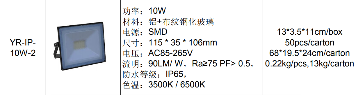 • 产品型号: 优瑞YR-IP- 10W-2系列投光灯