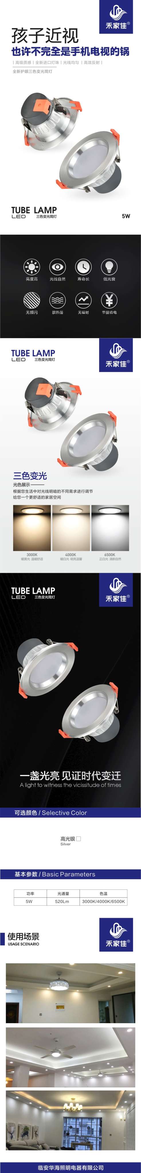 • 产品型号: 华海三色变光筒灯