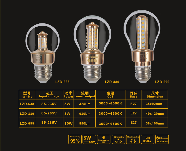 灯饰 灯饰产品 蕾曼斯LZD-638/889/699系列球泡灯