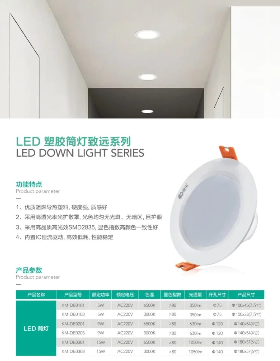 灯饰 灯饰产品 LED塑胶筒灯致远系列