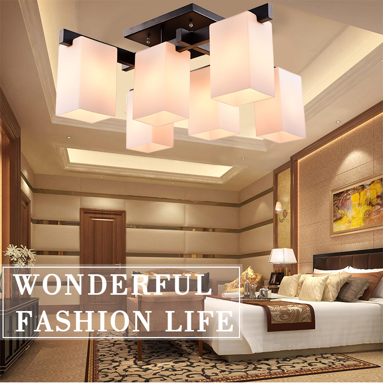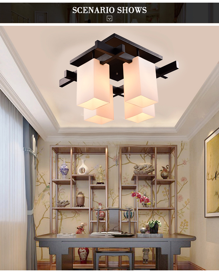 • 灯饰 灯饰产品 现代简约铁艺灯身玻璃书房卧室吸顶灯