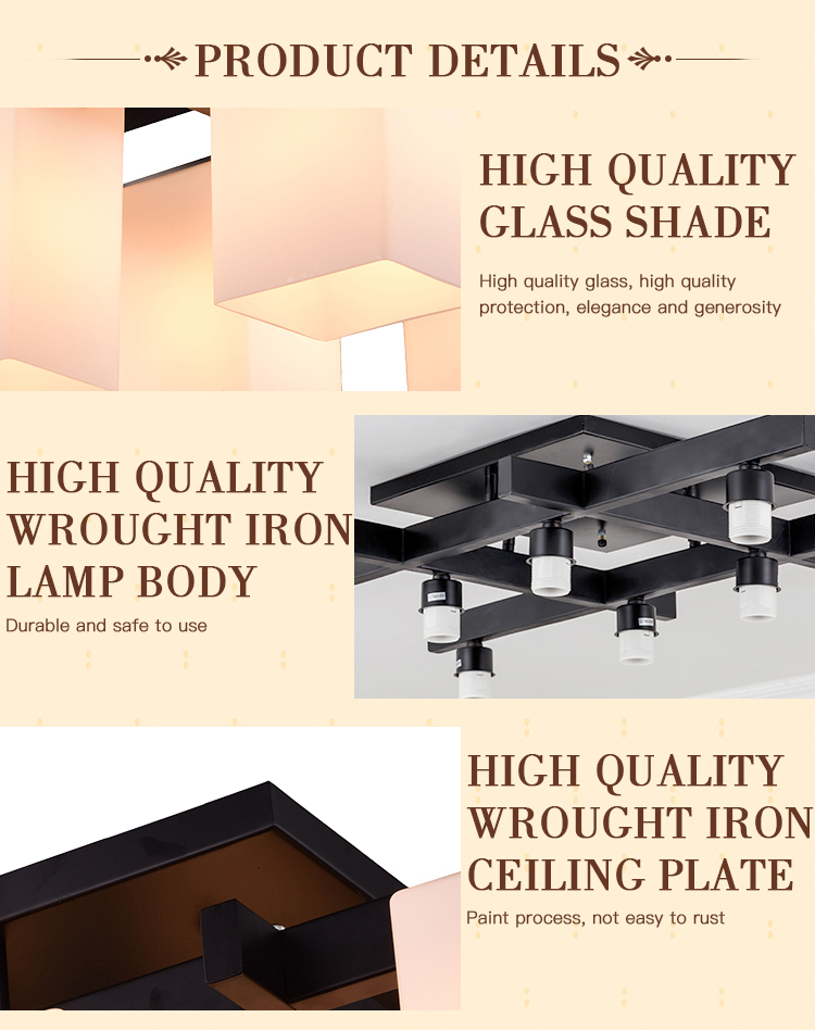 • 产品名称: 现代铁艺灯身玻璃吸顶灯书房卧室照明灯具