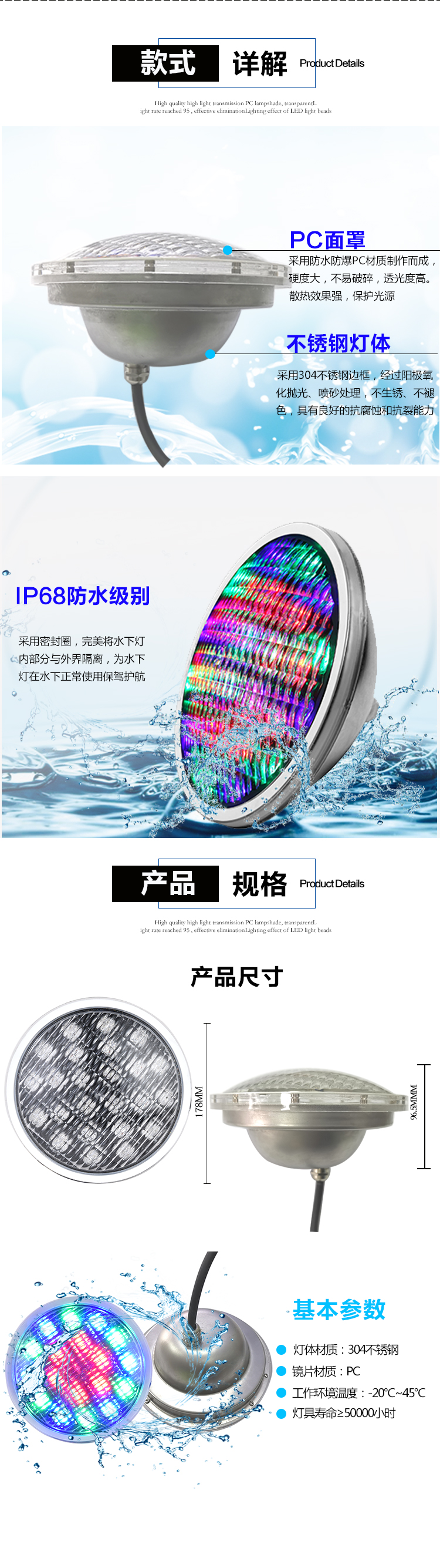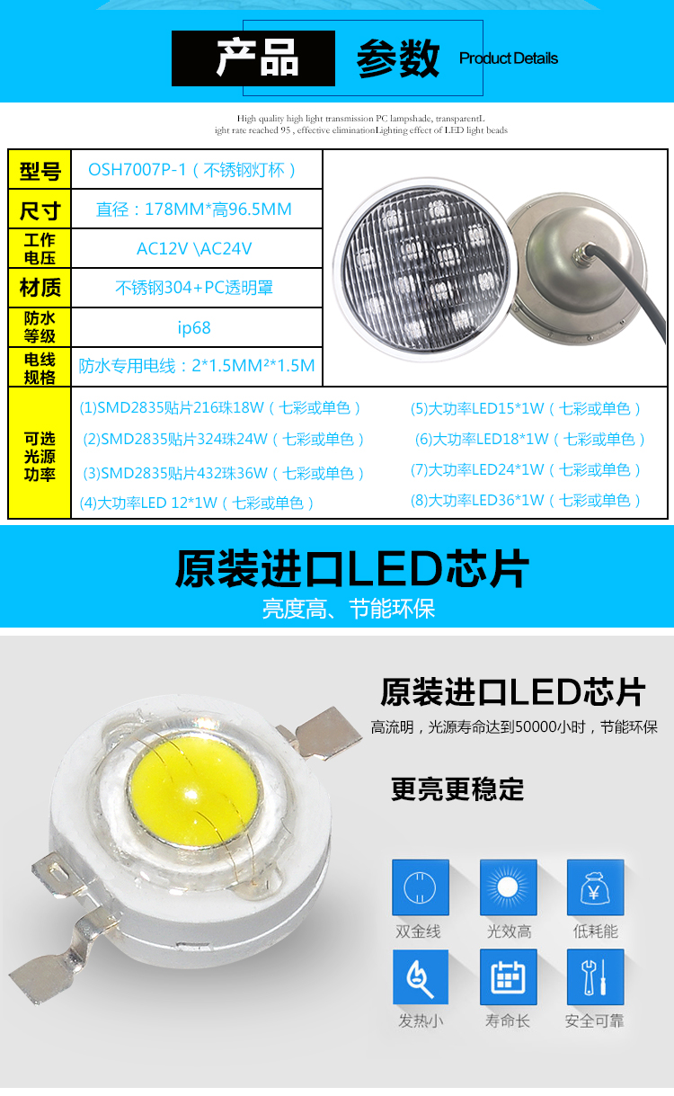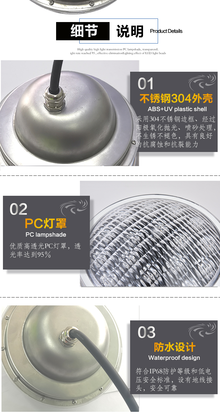 灯饰 灯饰产品 厂家直销LEDPAR56泳池灯PAR56灯杯水底水下单色七彩大小功率定制