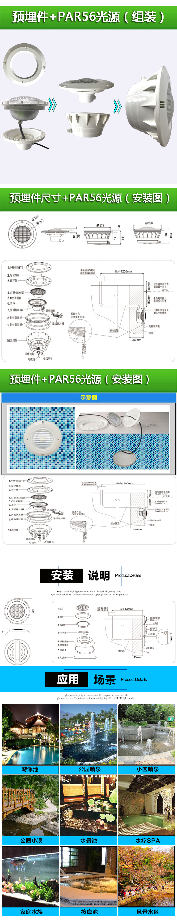 • 产品应用: 泳泳池 水下 水底 夜景亮化