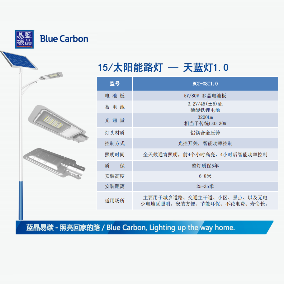 • 产品名称: 太阳能天蓝灯1.0路灯