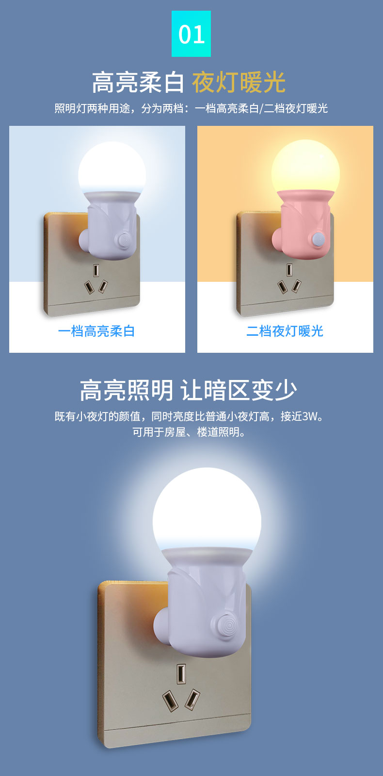 • 产品名称: 护眼即插式照明小夜灯