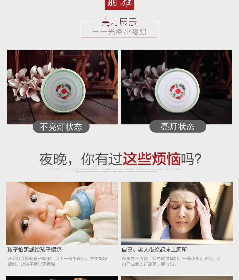 灯饰 灯饰产品 护眼卧室床头圆形小夜灯