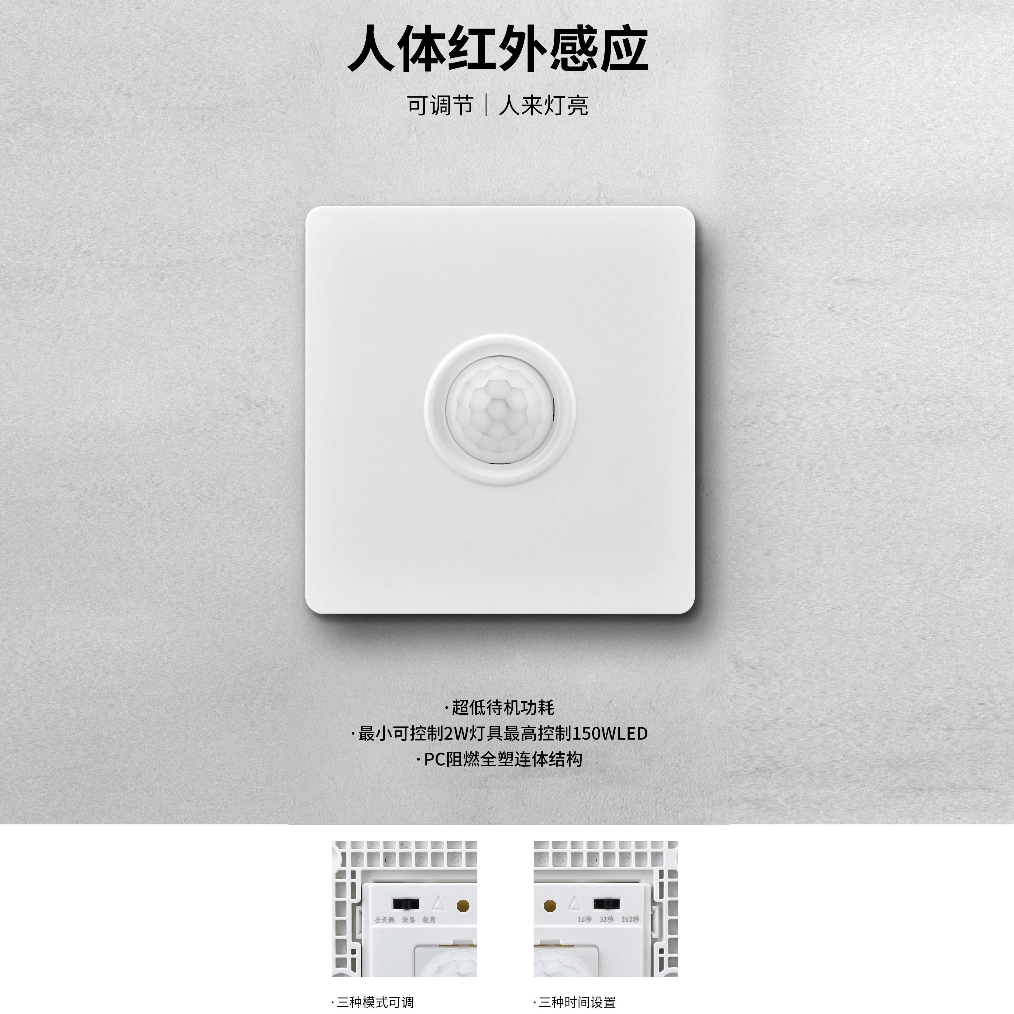 • 产品型号: 可调节人体红外感应灯