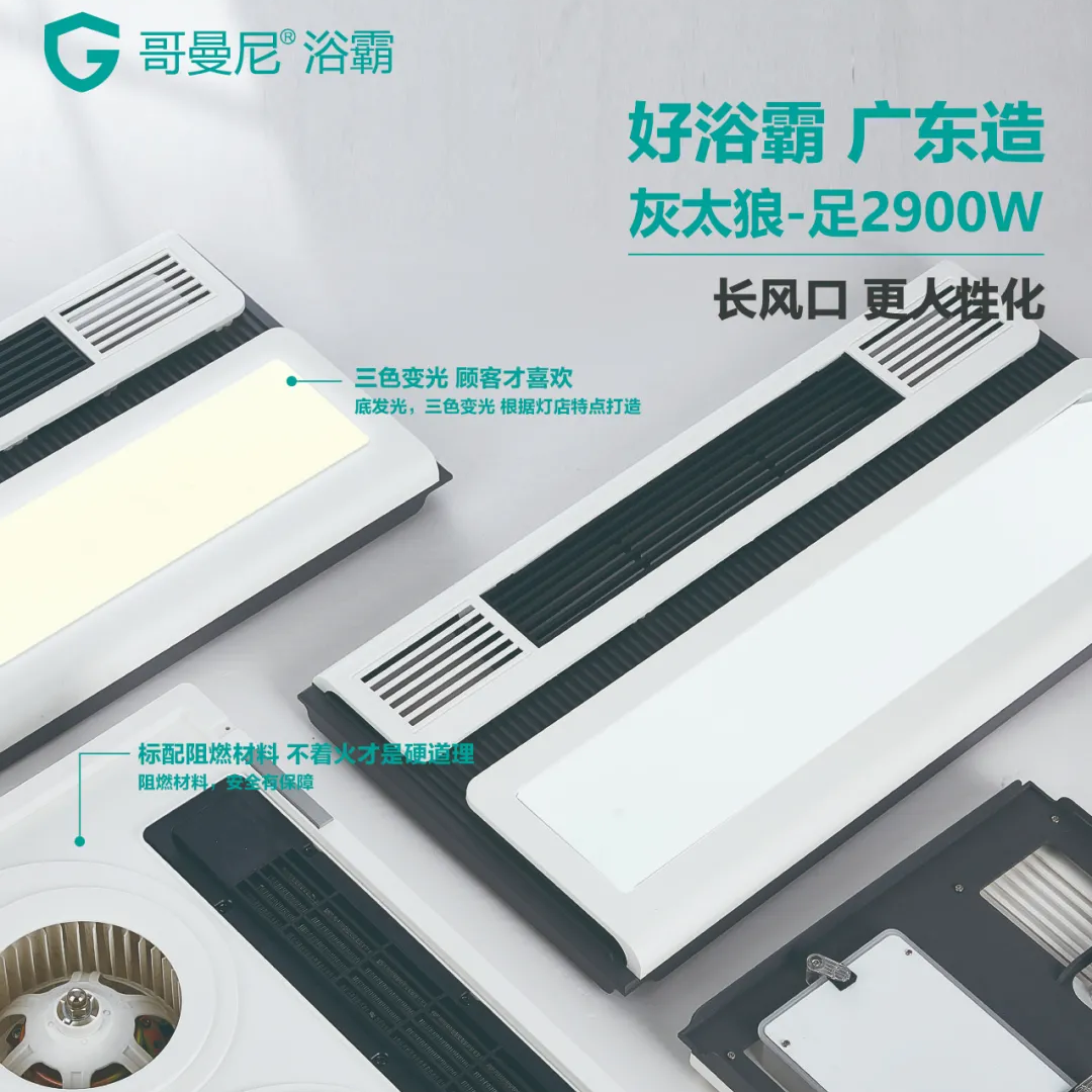 • 产品名称: 长风口三色变光2900W大功率浴霸灯