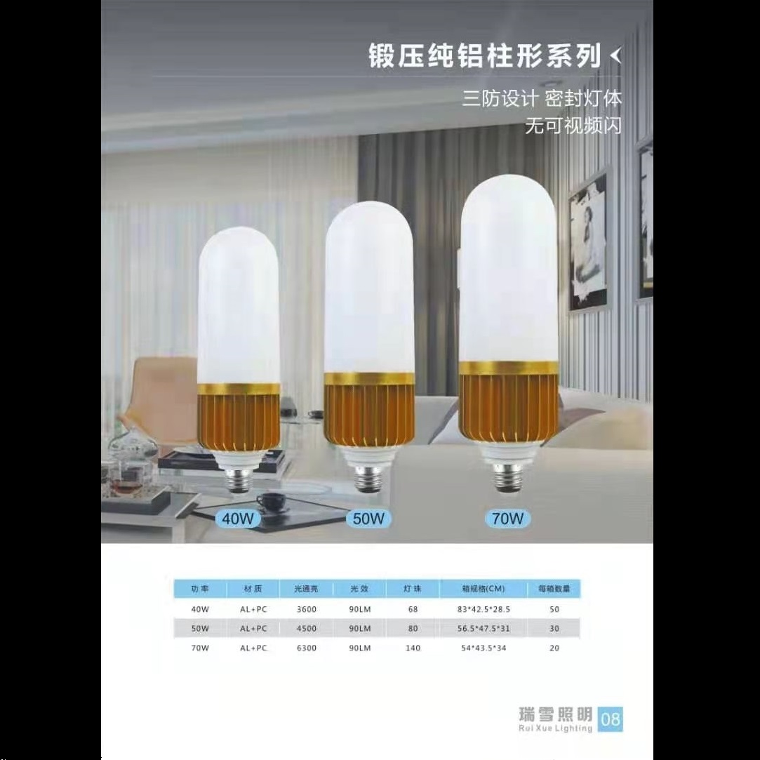 灯饰 灯饰产品 三防无频闪锻压纯铝柱形系列高亮球泡灯