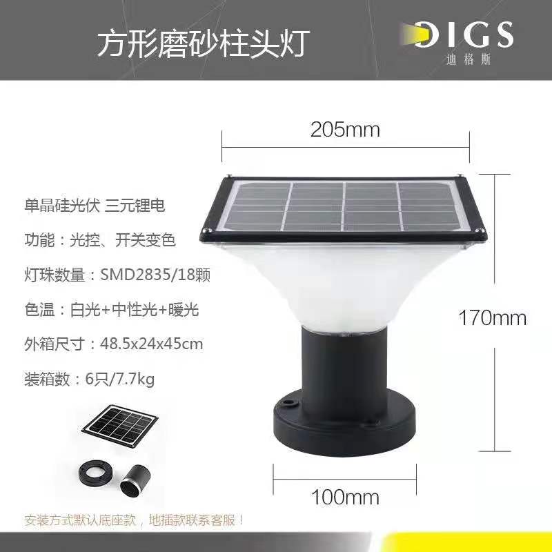 • 灯饰 灯饰产品 光控户外庭院别墅方形LED磨砂柱头灯