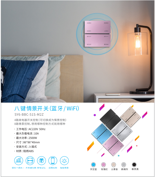 • 远程控制蓝牙WiFi八键情景开关