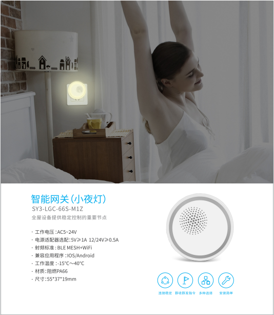 • 产品名称: 多种选择接受指令智能网关小夜灯
