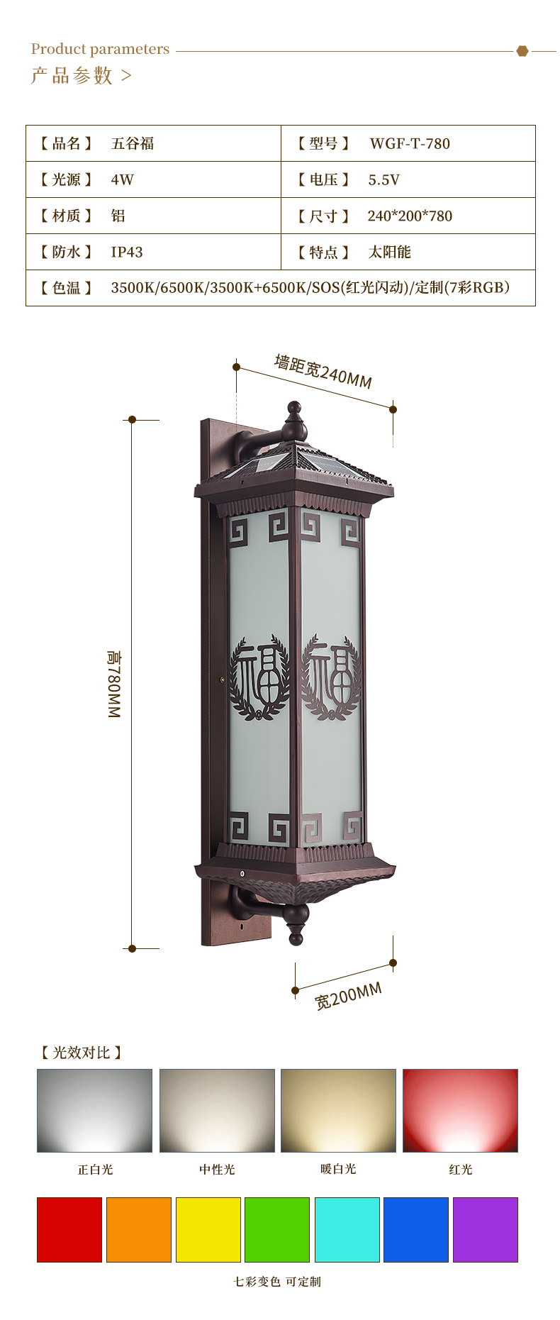 • 产品名称: 联球新中式户外防水壁灯轻奢户外酒店会所外墙灯led中国风室外防水阳台花园灯具古典别墅大门口庭院灯