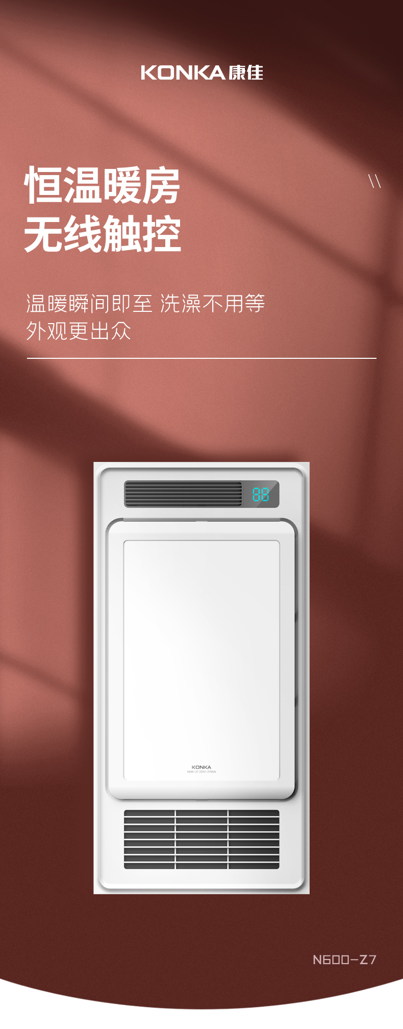 • 产品名称: LED家用浴室恒温暖房无线触控浴霸灯