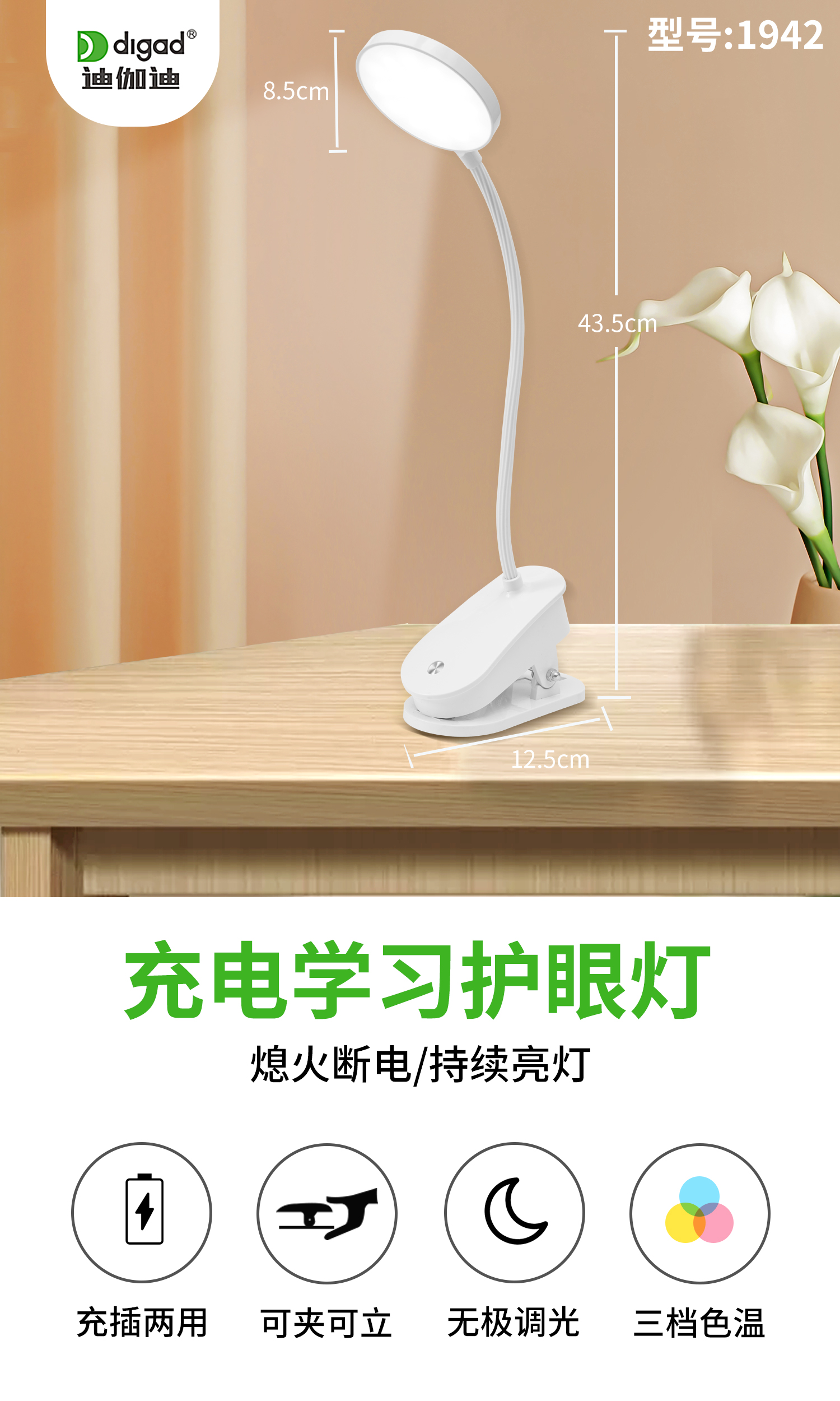 灯饰 灯饰产品 1942系列可夹可立充插两用可调光台灯