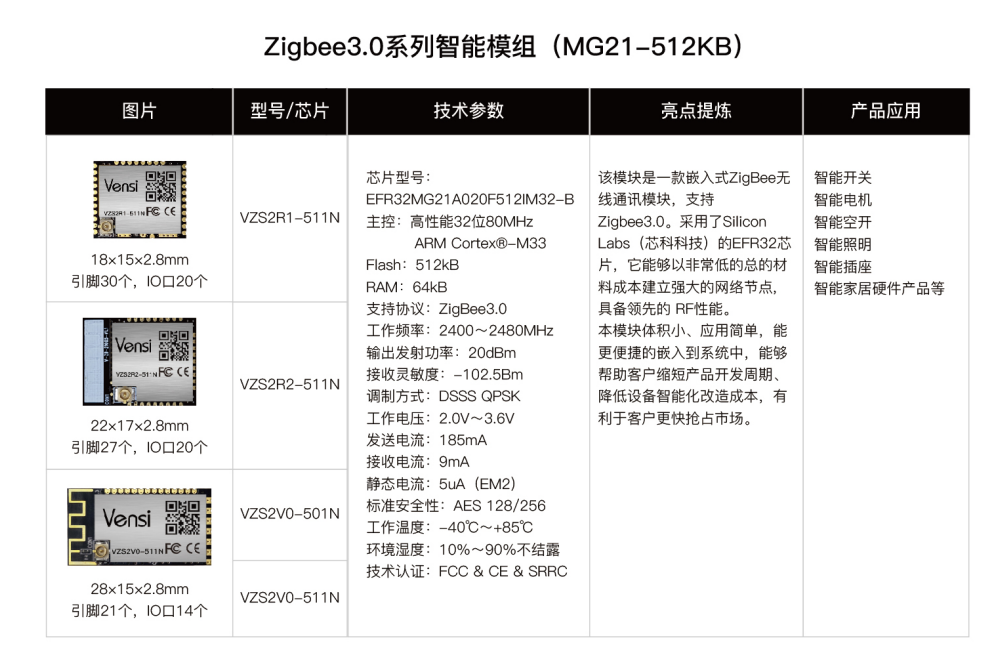 • 超低功耗智慧生活Zigbee 3.0智能模组