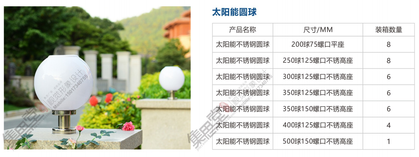 灯饰 灯饰产品 LED室外简约节能太阳能不锈钢圆球