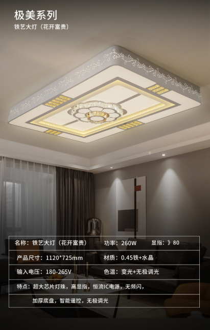 • 产品名称: 智能遥控高显指加厚地盘花开富贵系列吸顶灯
