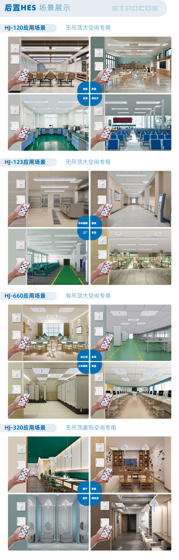 • 产品应用: 健康照明+安全消毒+自动排风