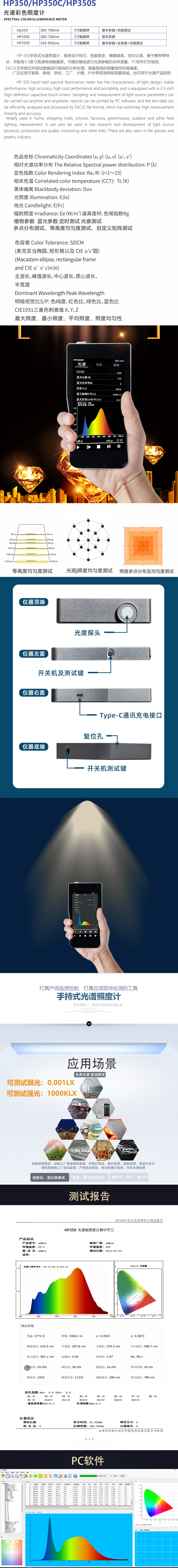 灯饰 灯饰产品 便携式光谱照度计HP350C 色温照度显色指数测试光谱仪现场测试