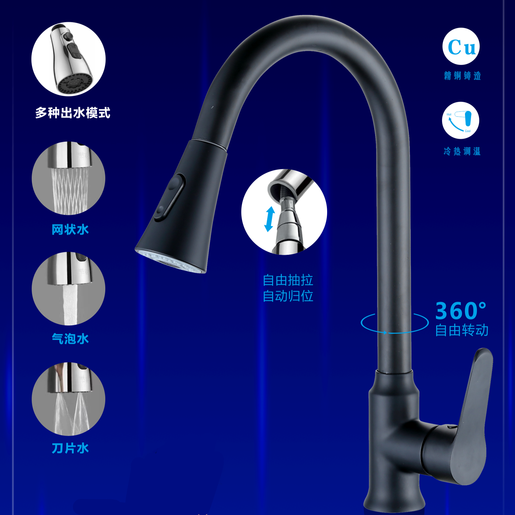• 多功能厨房抽拉龙头