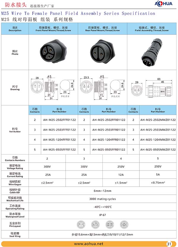 • AHUA 澳华 M25 后置 机箱固定 防水接头    电网供电柜