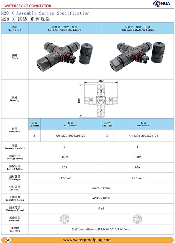 • 灯饰 灯饰产品 AHUA 澳华 M20四通 螺丝 新能源电动车 防水连接器