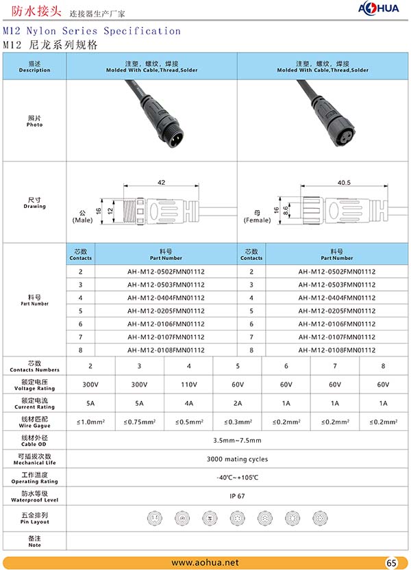 •  AHUA 澳华 定制 M12  防水连接器 电气工程