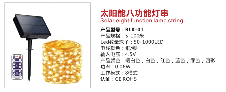 • 灯饰 灯饰产品 遥控多色氛围太阳能八功能灯串