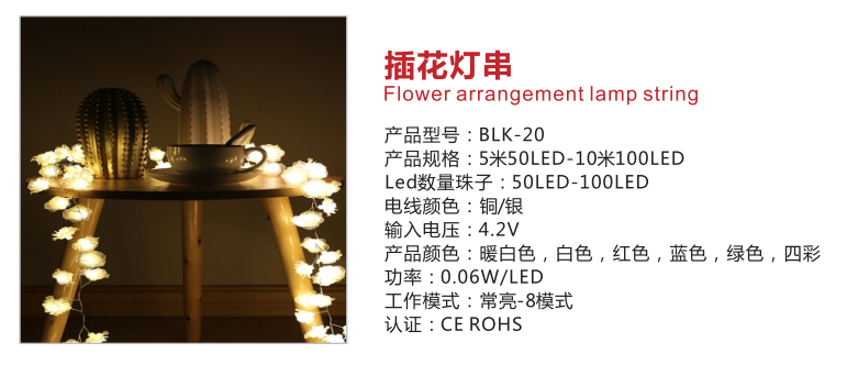 • 产品名称: 室内多颜色常亮氛围插花灯串