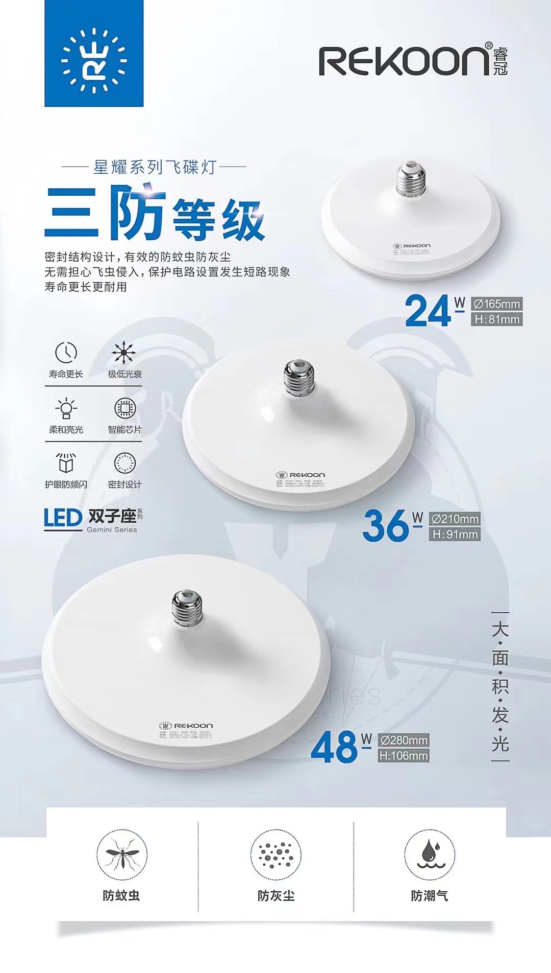 • 产品型号: 星耀系列寿命长低光衰柔和亮光飞碟灯