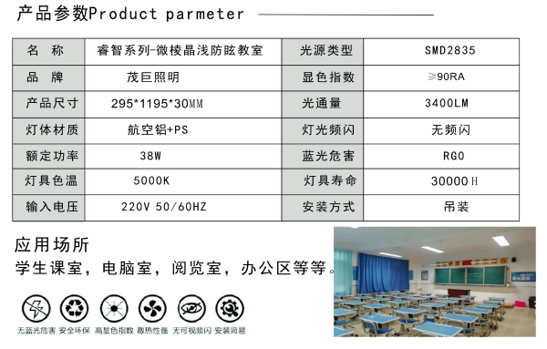 • 产品型号: 教育照明微棱晶浅防眩教室灯睿智系列