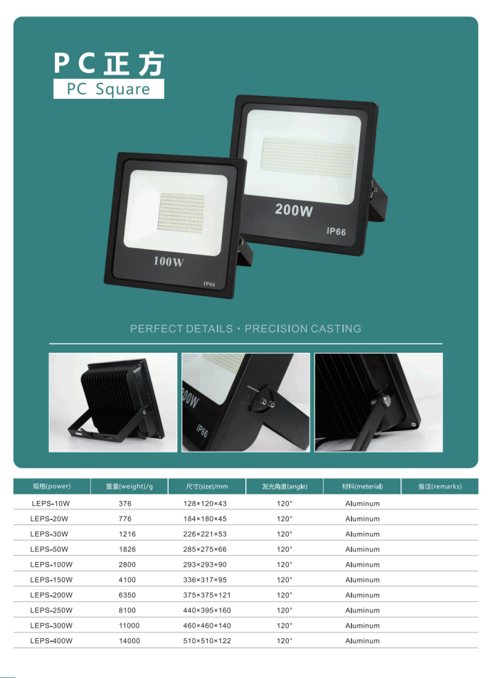 • 产品名称: 户外投光灯PC正方铝制外壳套件