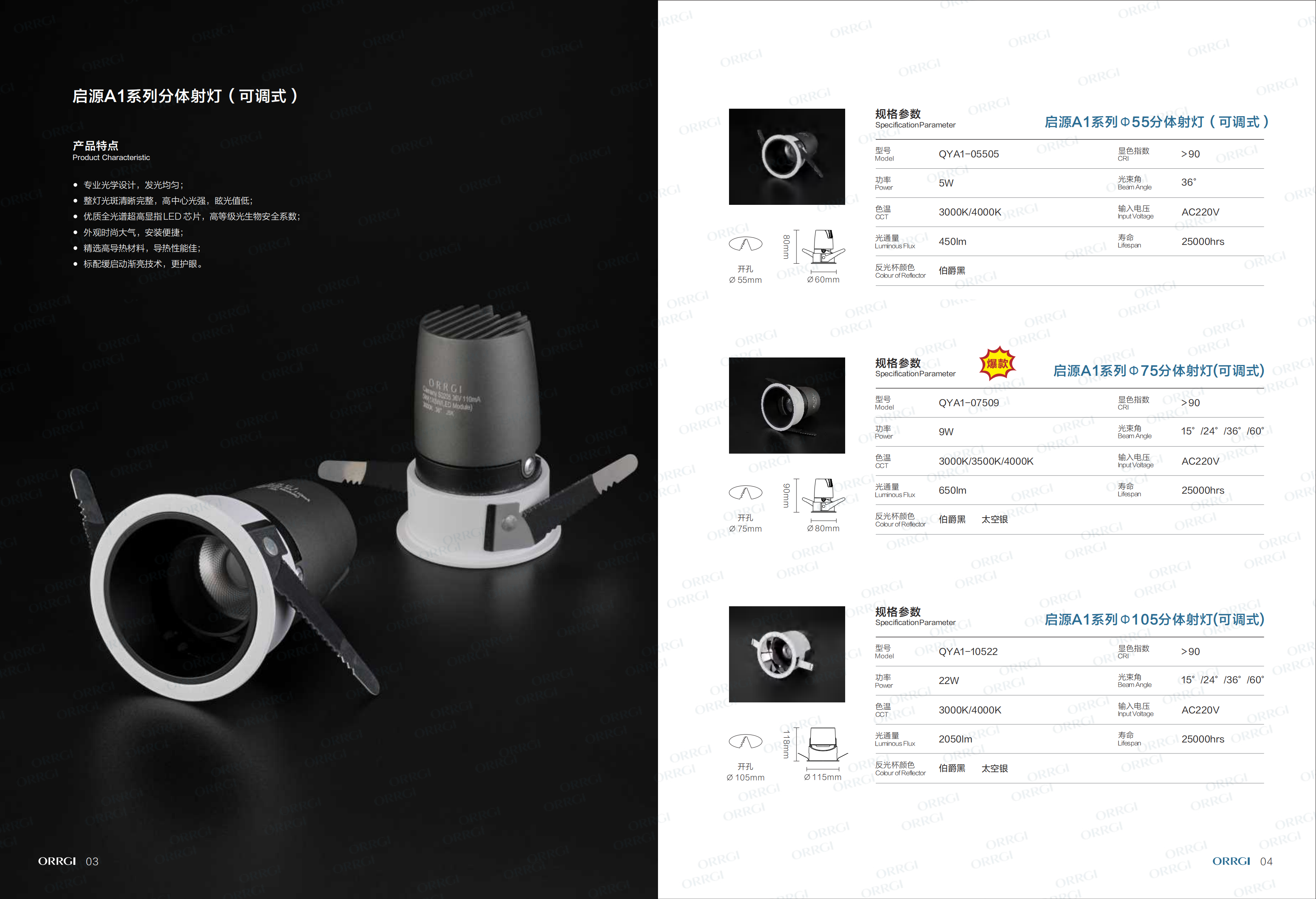 • 产品名称: 启源A1系列室内时尚可调式分体射灯