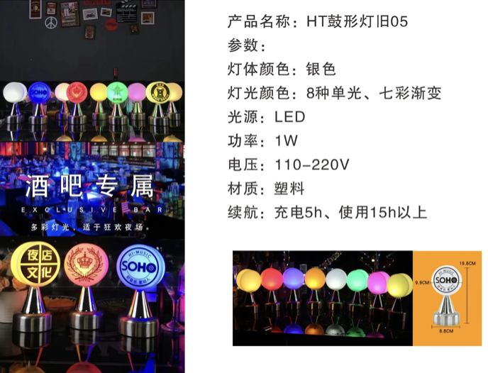 • HT鼓形酒吧专属多彩灯光台灯