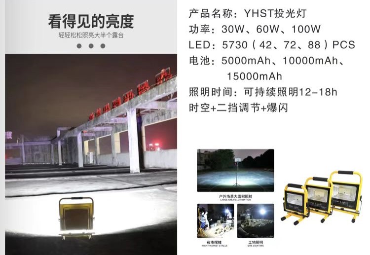 灯饰 灯饰产品 YHST二档调节续航长投光灯