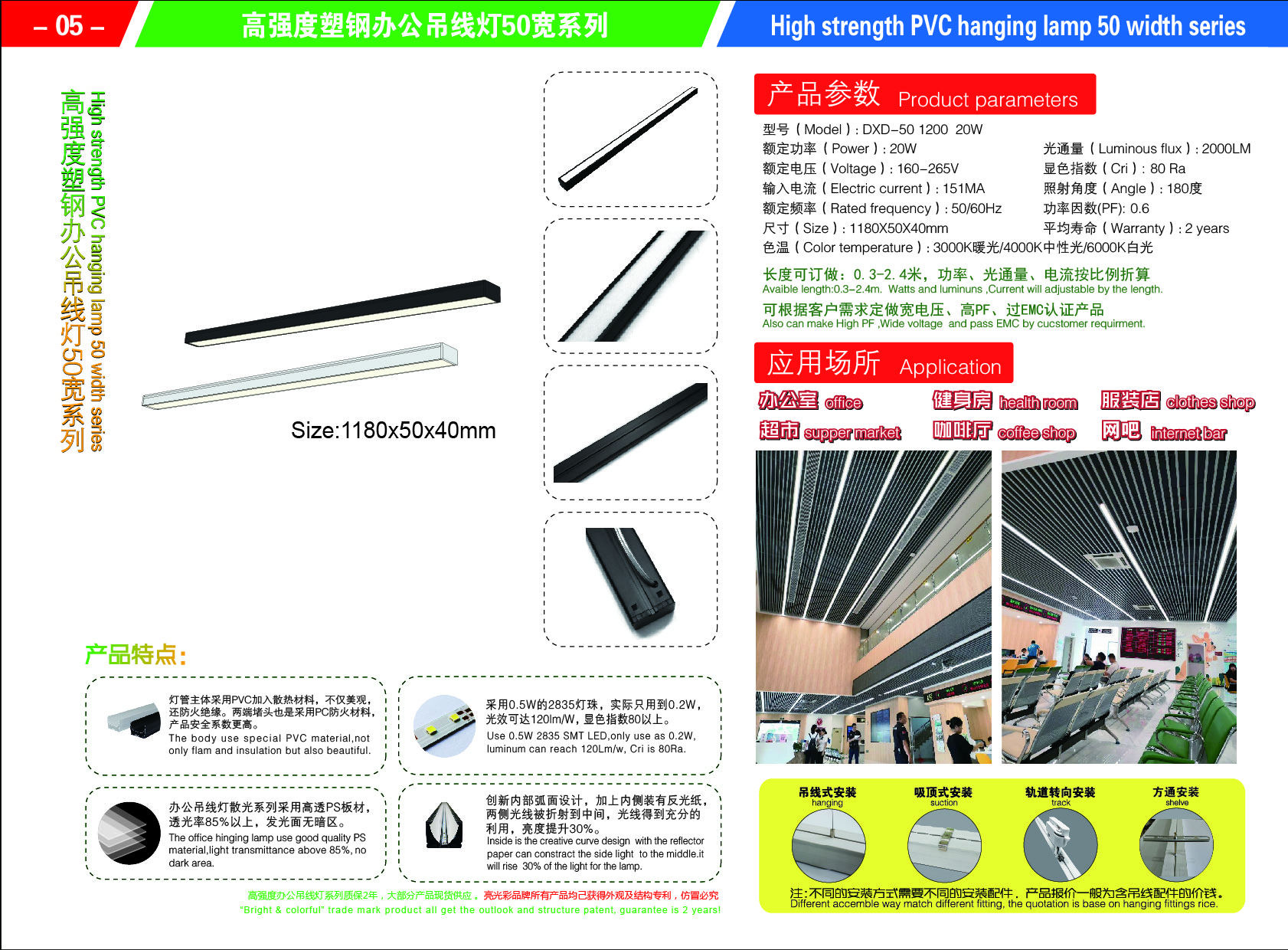 • 产品名称: 50宽塑钢办公吊线灯