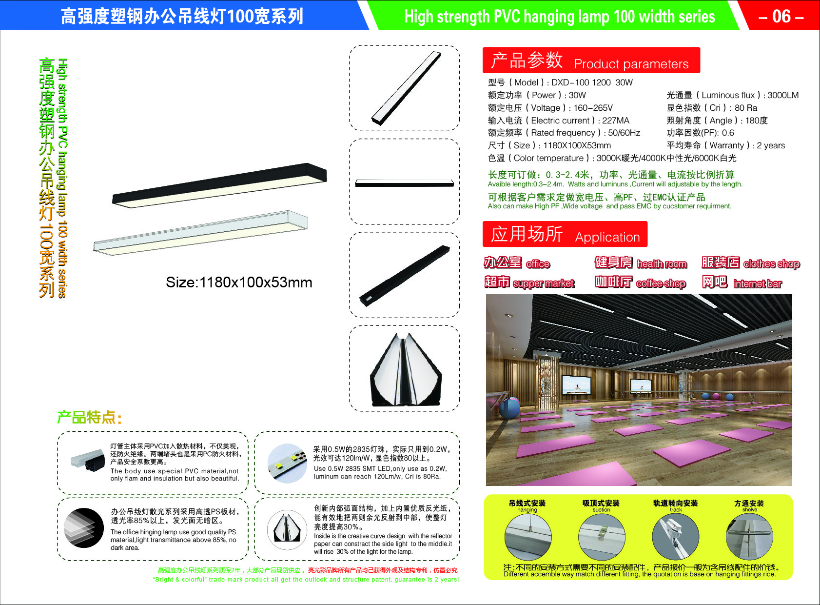 • 产品名称: 100宽塑钢办公吊线灯