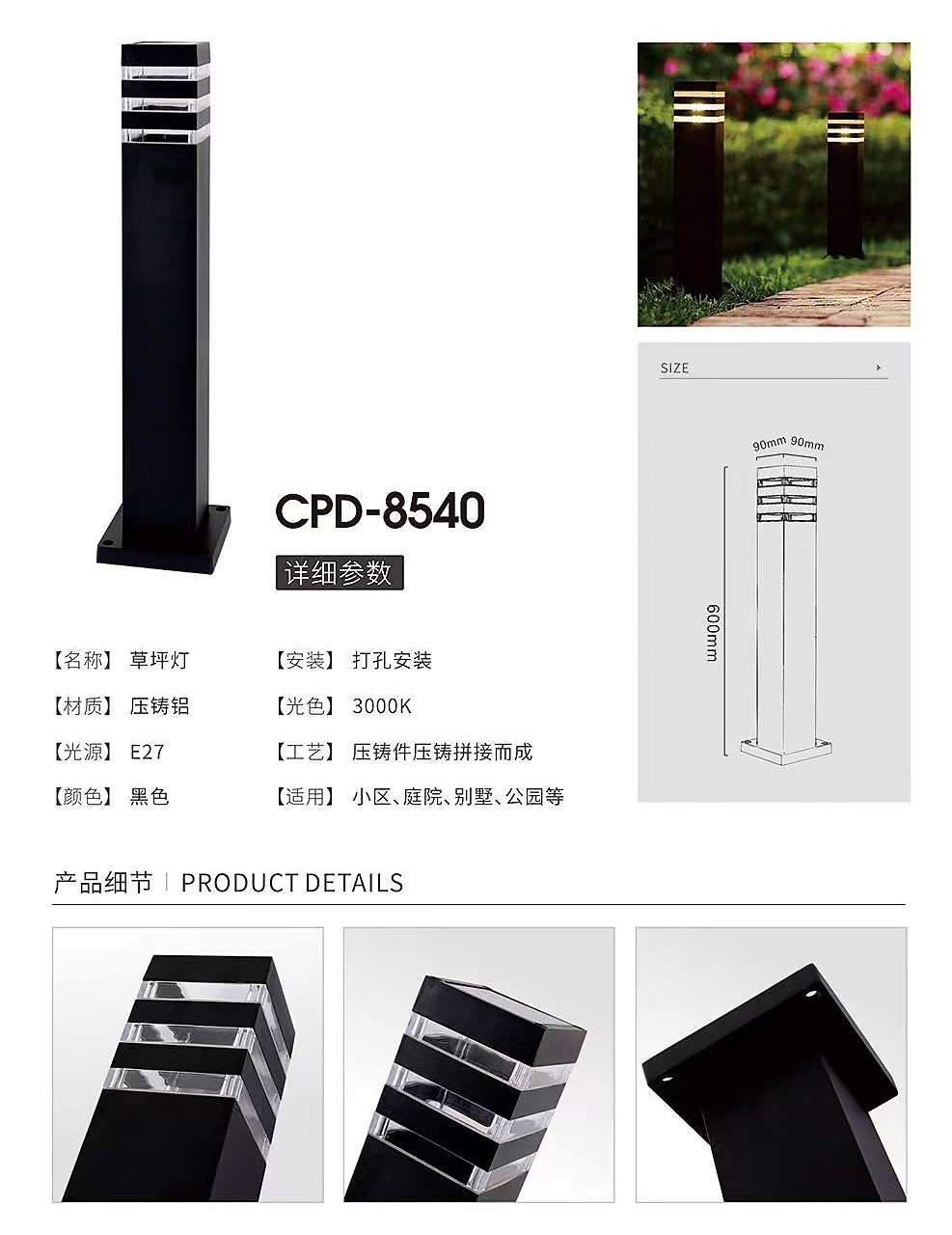 • 产品应用: 小区、庭院、别墅、公园等