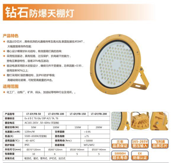 • 产品名称: 蜂窝状补光高高效率钻石防爆天棚灯