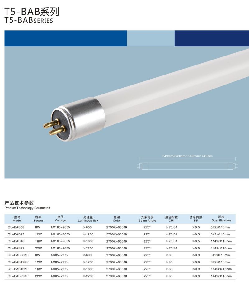 • 产品型号: T5-BAB系列室内照明灯管