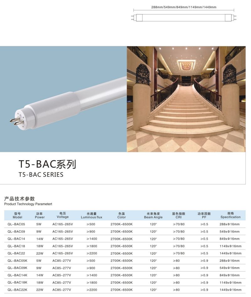 • 产品名称: T5-BAC系列酒店大堂光源灯管