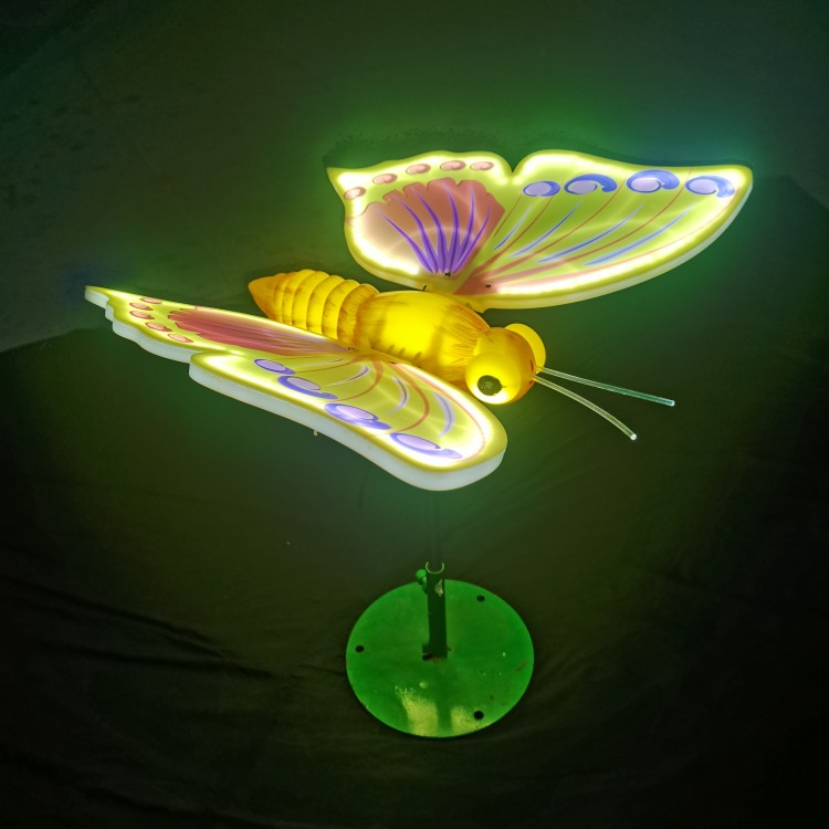 产品规格:产品共有五个尺寸:直径150/125/47/64/74CM,高度可做0.5-1.2米,身子的厚度为10-15CM,翅膀上印有多款精美的图案并在里面装有高亮贴片灯带,外壳材质为ABS料。在身子底部出线1.3米用于接线安装,直流12V电压。户外防水。本产品为分体式浓缩包装。运费低。