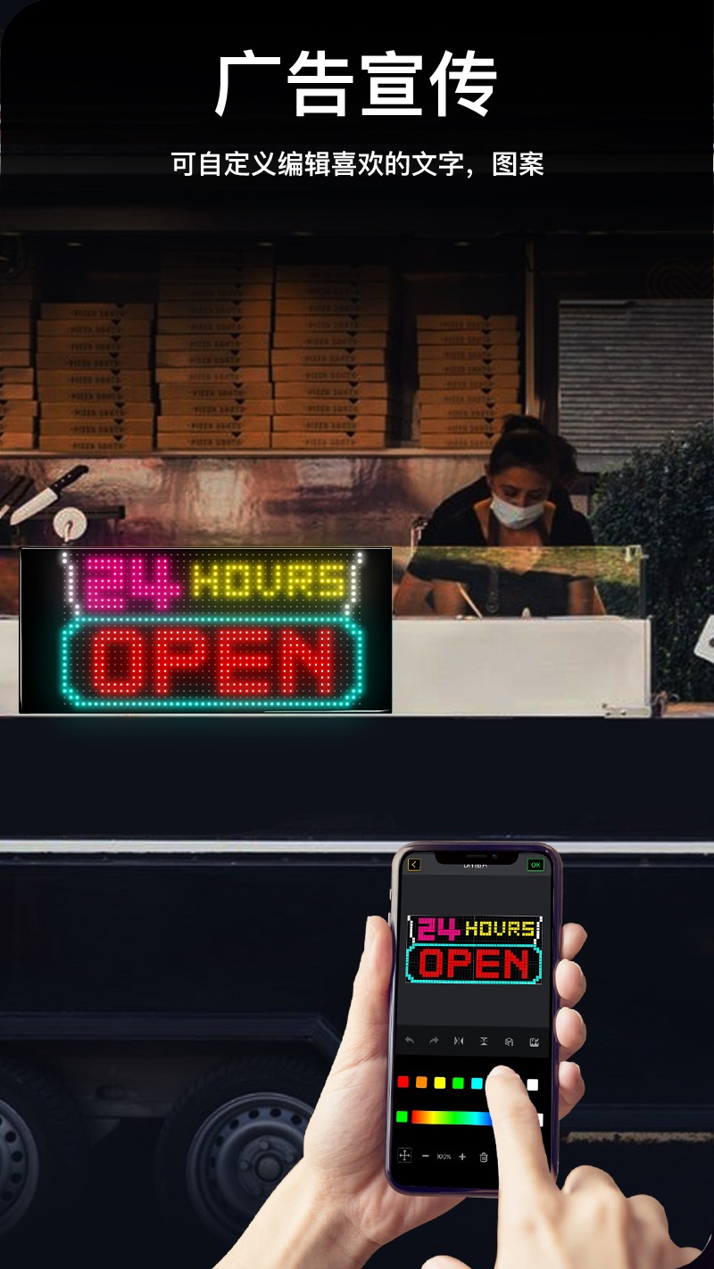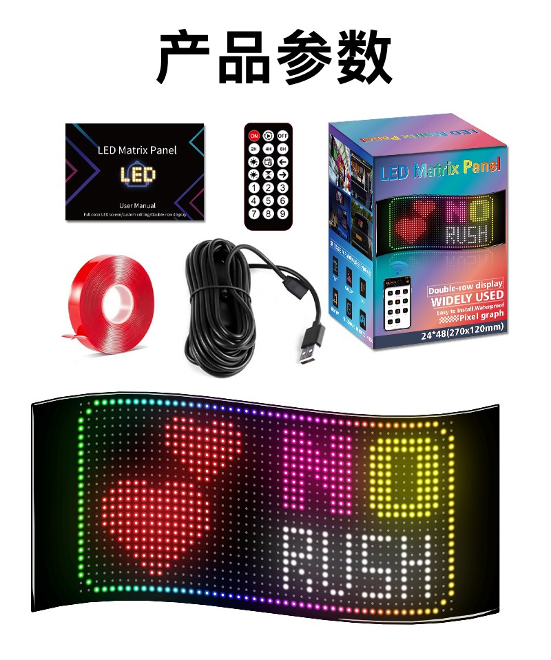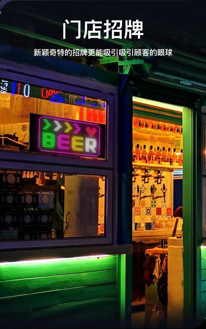 • 产品应用: 车载LED柔性广告屏、LED柔性橱窗广告屏、LED柔性门头广告屏、文旅网红打卡广告屏